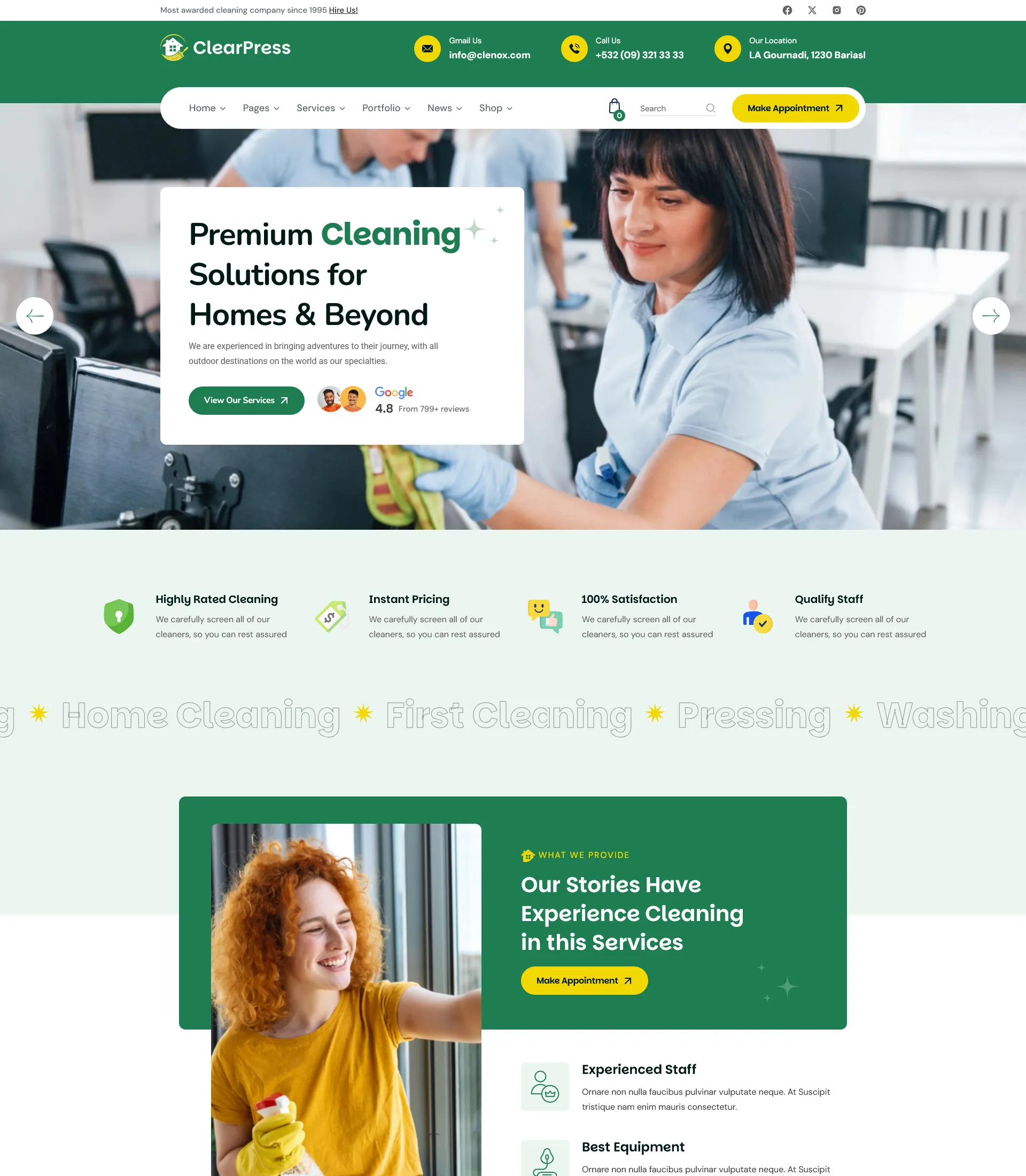 Powerful features for Cleaning Services WordPress Theme